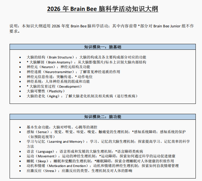 BrainBee竞赛个人报名通道2026年1月26日-2月1日期间开放!