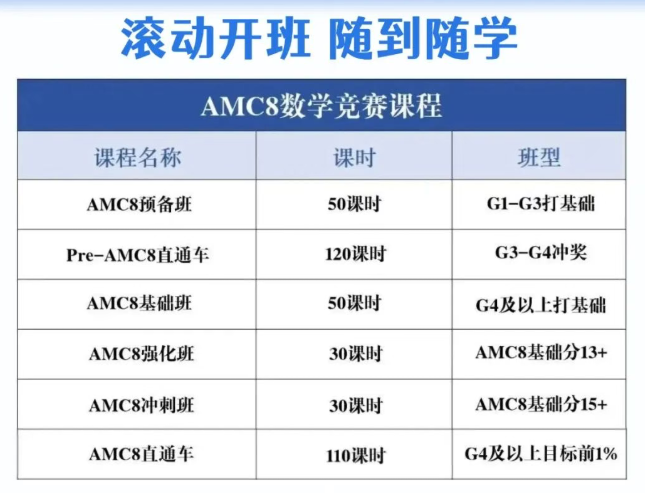 AMC8竞赛每年举办一次,2027年AMC8考试将于明年一月份进行,对于低领孩子来说,现在正是规划和学习AMC8的黄金时期。为了助力同学们在比赛中取得优异成绩,犀牛AMC8寒假班正在火热报名中