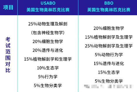 以下为BBO和USABO竞赛考察范围对比,同学们可参考: