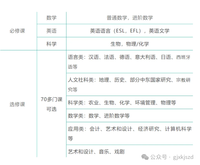 开设科目:数学、进阶数学、英语、物理、化学、生物、经济、计算机、心理学、中文等