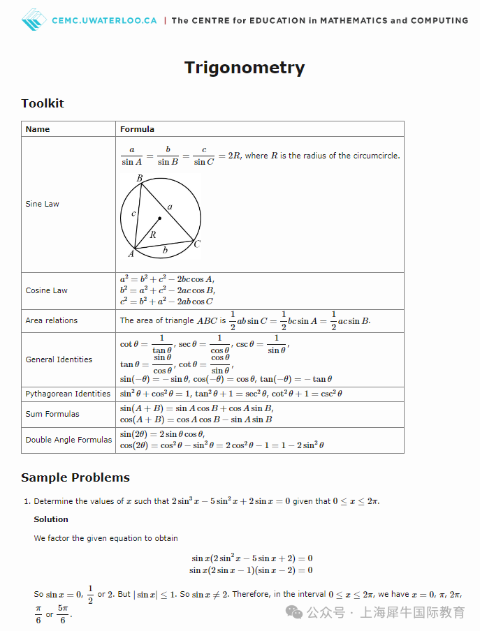 欧几里得数学4月开考,大家提前2-3周开始做欧几里得数学竞赛真题,对于知识点掌握还不熟练的同学,橙子老师给大家准备了一份欧几里得数学知识点,分为6个单元,每个单元说明所用到的公式和练习题,像指数对数、三角函数、方程和多项式涵盖齐全,的确是备考的重要复习资料。