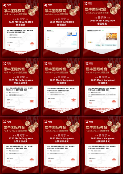 Math Kangaroo 成就奖:仅限考试满分的学生,是全球顶尖水平的认证。