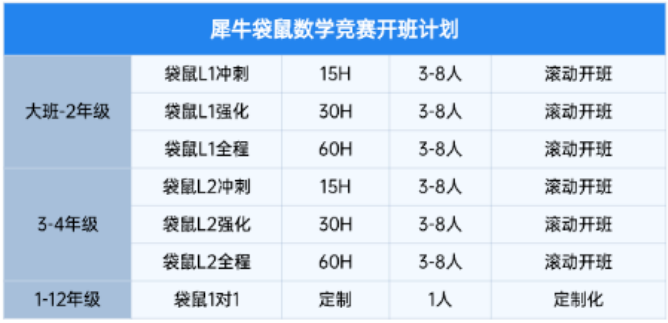 袋鼠竞赛课程班型设置:精品小班/1V1/自组班(3人开班)