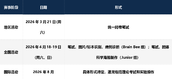 Brain Bee组:面向9-12年级学生(通常对应国内高中一年级至高三)