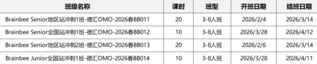 针对BrainBee竞赛开设了不同班型的冲刺培训课程,包括BrainBee Junior和BrainBee Senior培训课程,适合不同年级、不同基础的学生学习。