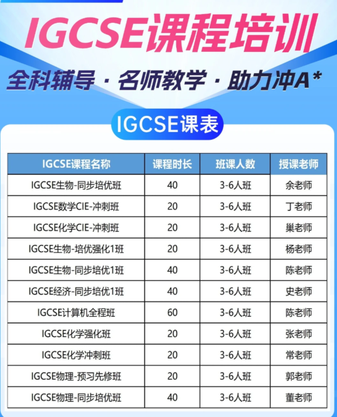 犀牛IGCSE/Alevel课程目前有一对一和小班课程,根据中国学生学习规律,开设有预学,同步,巩固,冲刺,专讲课程,助力学生提升,打好国际课程学习基础!