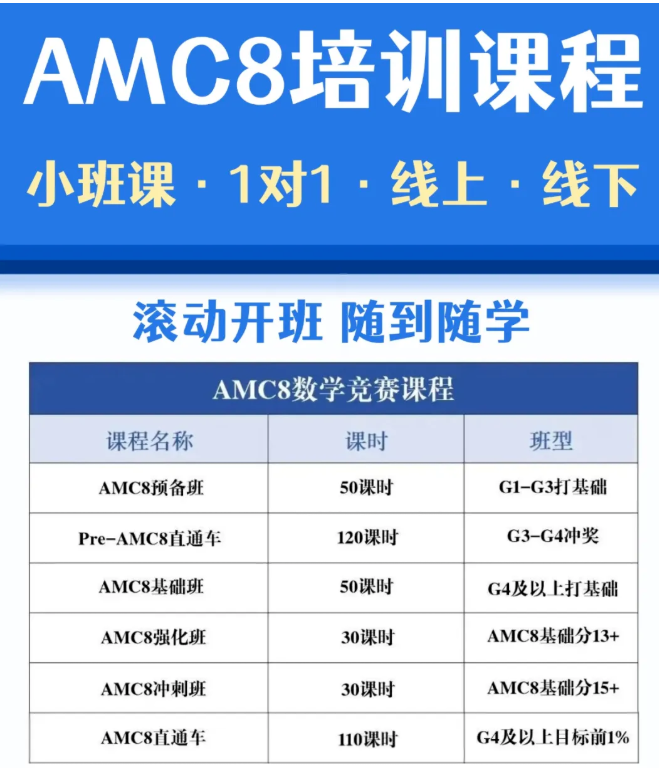 AMC8培训课程线上:腾讯会议,3-8人小班教学,有回放