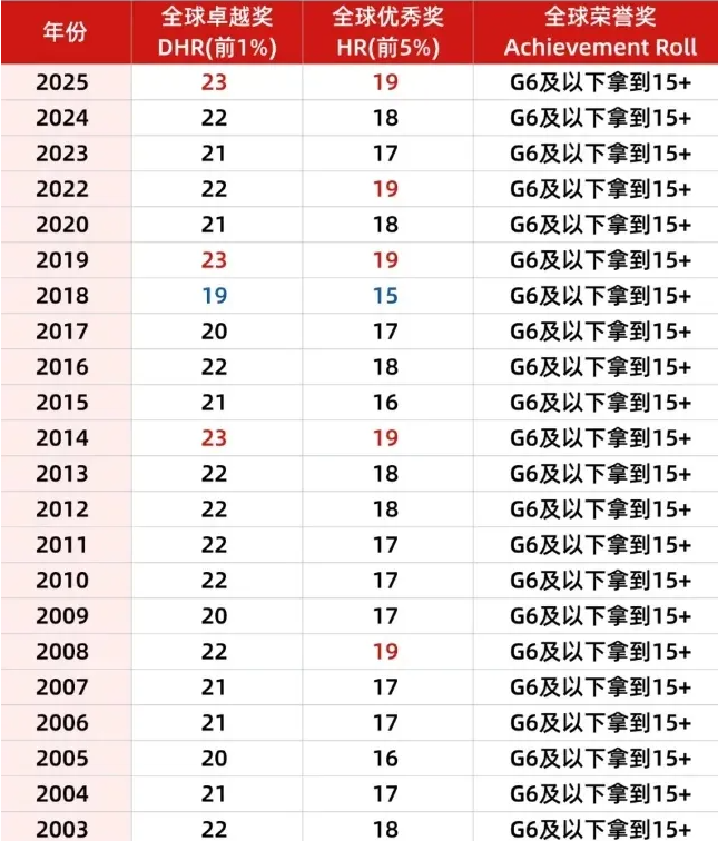 Honor Roll of Distinction全球卓越奖:全球排名前1%Honor Roll全球优秀奖:全球排名前5%
