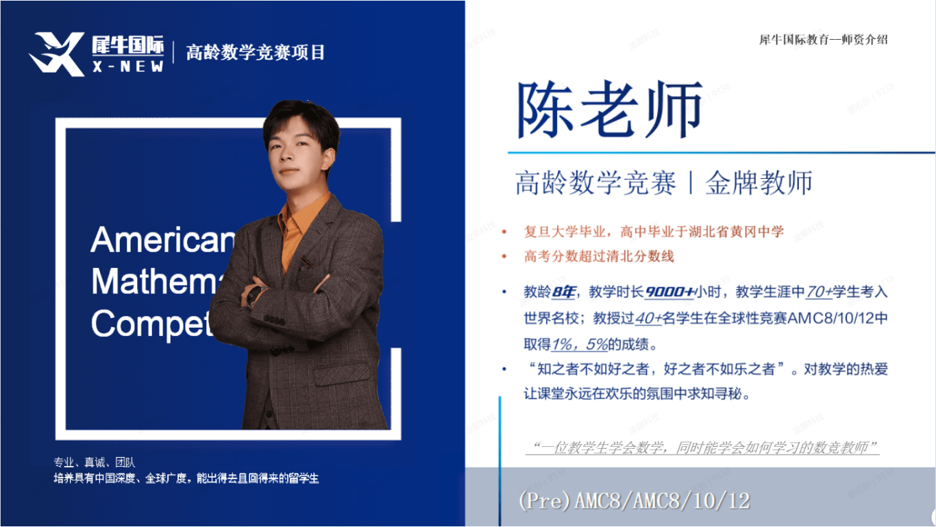 除了王老师,犀牛还有更多名校毕业且学生成绩都非常好的AMC10授课老师: