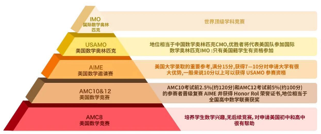 USAMO/USAJMO(美国数学奥林匹克):在AIME基础上选拔出的全美最顶尖学生参与,是国家队选拔的起点。