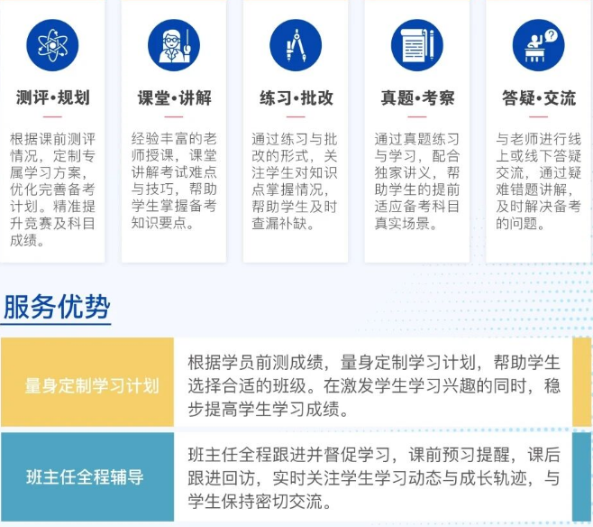 提供线上和线下同步授课模式,课程设置包括同步课程、冲刺课程和衔接课程等多种类型,适合不同需求的学生。