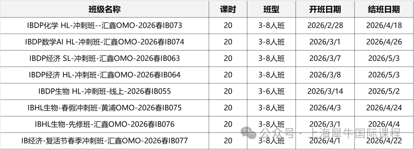 2026年IB大考时间已经确定,在考前冲刺这段时间已经如何准备?犀牛开设有专门的IB考前冲刺培训课程,线上/线下都可以学习,专业师资教学, 帮助同学们冲刺大考高分成绩!