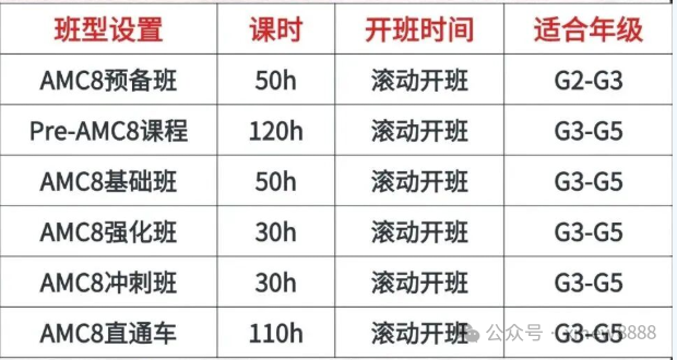 AMC8培训课程安排