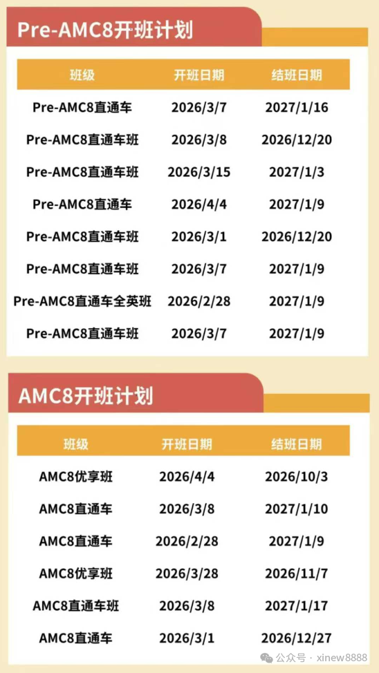 AMC8课程班级人数:3-8人小班/1V1授课/自组班