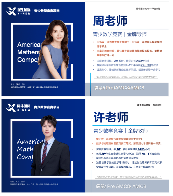上海犀牛教育不夸大提分效果,不搞过度营销,专注做好每一堂课,帮孩子避开备赛误区,稳步提升数学思维和应试能力。如果你也在黄浦,正为孩子AMC8备赛发愁,不妨实地了解一下,相信会给你和孩子带来惊喜,这也是众多黄浦家长愿意相互推荐的原因。