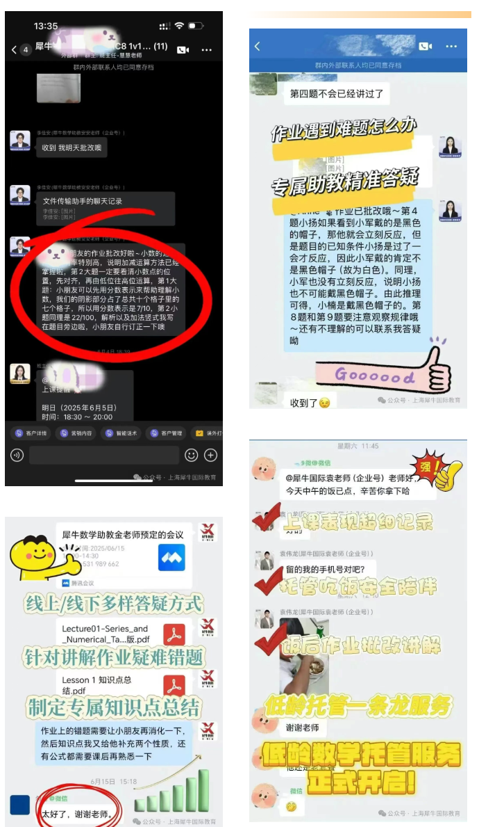 犀牛的督学服务也让黄浦家长格外省心。课后老师会及时批改作业、复盘错题,建立专属家长群,实时反馈孩子的学习进度,家长能随时掌握孩子的备赛状态。