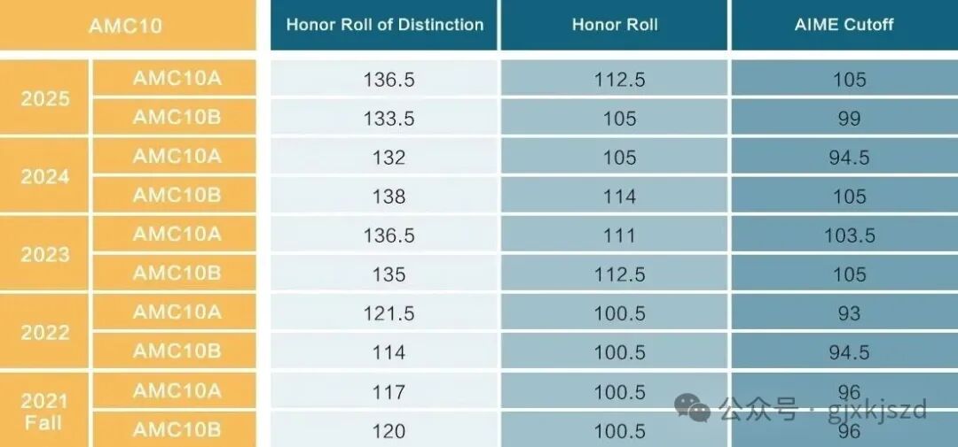 从AMC10数学竞赛历年获奖分数线看,A卷和B卷的分数线差距并不大。