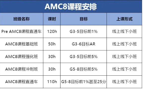 AMC8课程类型:3-8人小班/1v1 ,滚动开班