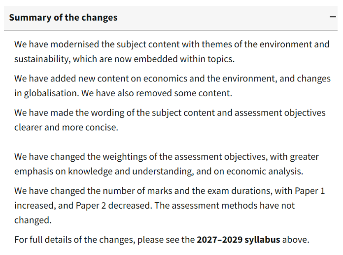 剑桥考试局的IG经济Economics(0455) 2027-2029的考纲有哪些变化?是很多计划在2027年参加IG经济大考的同学们比较关心的问题,下面我们就来详细聊聊。