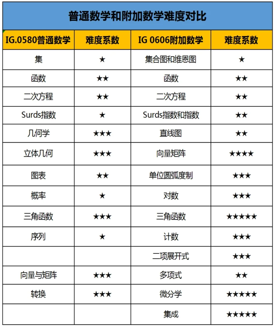 不仅考察范围更广,IG数学0606知识点学习深度也是明显高于IG数学0580的,我们用一张图做下简单的对比: