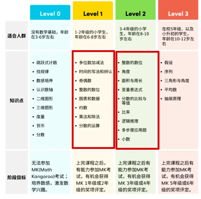 不同阶段袋鼠竞赛考察内容