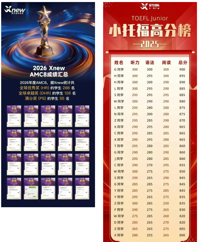 犀牛教育上海AMC8+小托福课程历年来教学成效显著,2026年AMC8竞赛中,今年犀牛学员55人获满分,126人进入全球前1%,288人进入前5%,竞赛晋级率高达90%,充分证明了课程的教学效果。