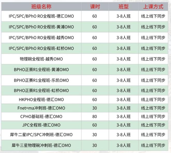 犀牛物理竞赛课程安排