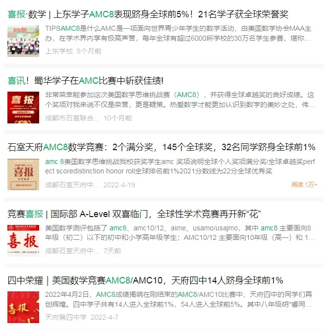 成都哪些学校参加AMC8?