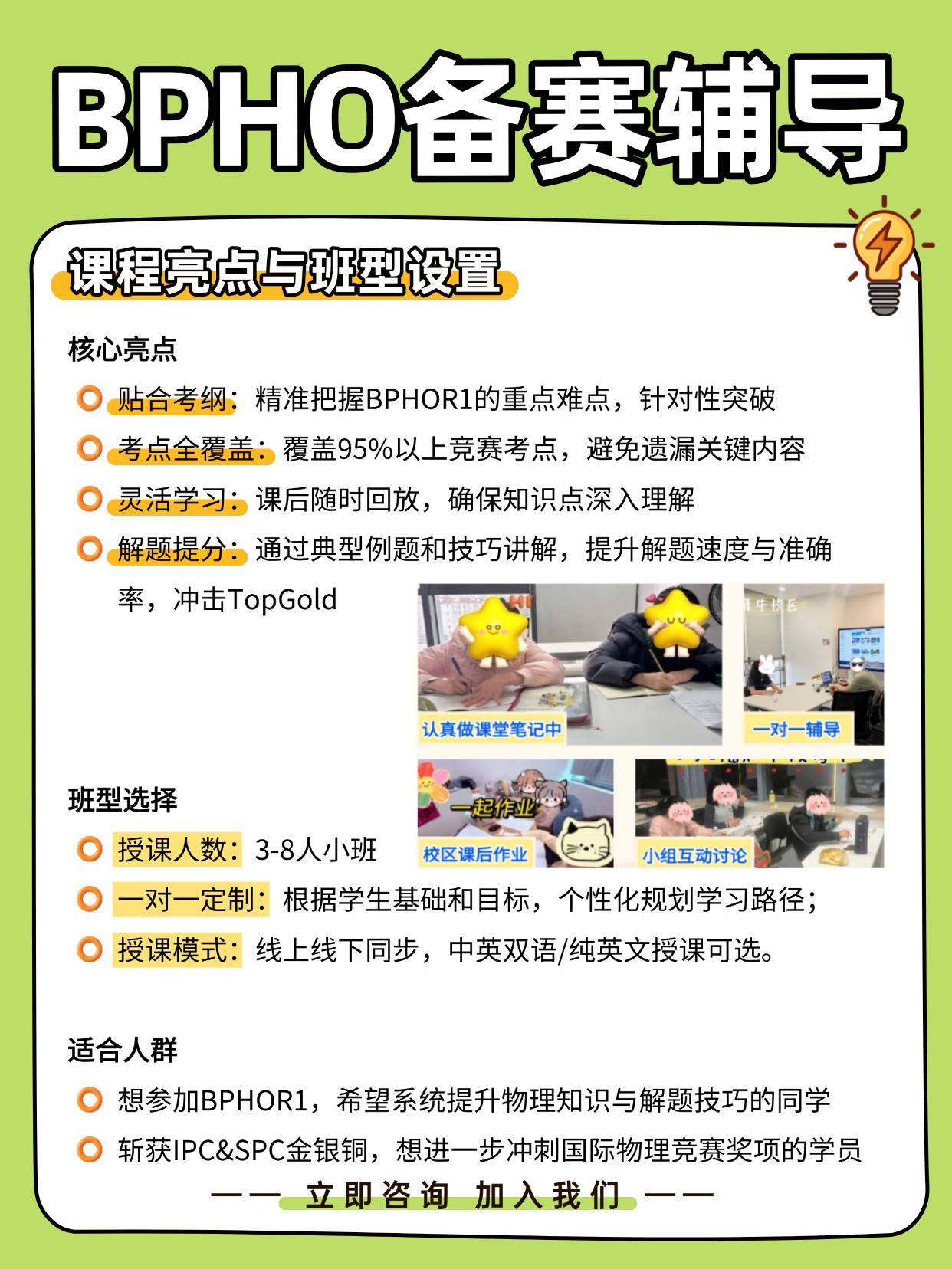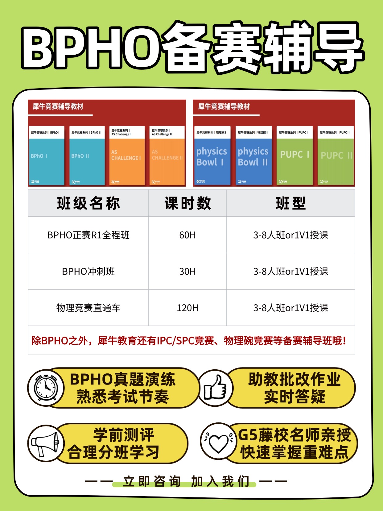 点击下方立即咨询犀牛教育BPHO备赛辅导班,获取详细课程安排及名师团队介绍!
