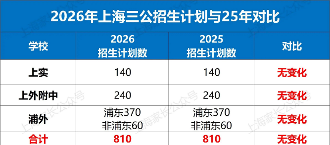 2026年4月8日至10日,上海三公学校(上海市实验学校、上海外国语大学附属外国语学校、上海外国语大学附属浦东外国语学校)陆续发布招生简章,总计划招生810人,报名时间为4月10日启动,4月18日统一进行面谈评估。