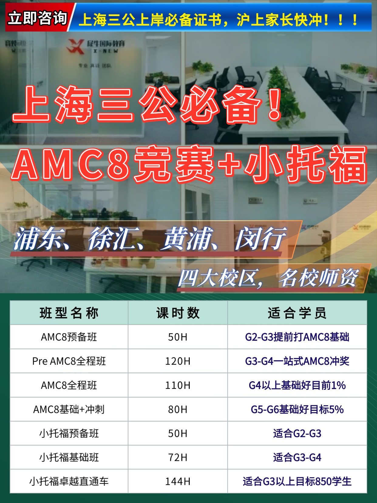 上海三公培训课程安排!AMC8竞赛+小托福辅导班