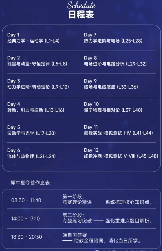 物理竞赛夏令营日程安排