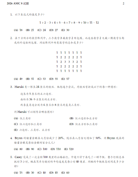 AMC8数学竞赛每年1月考试,中英双语试题,25道单项选择题,答对1题得1分,答错不扣分,总分25分。作为AMC8竞赛备考过程中重要的备赛资料,AMC8历年真题试卷是同学们直接了解考试题目,适应考试节奏的重要资料。