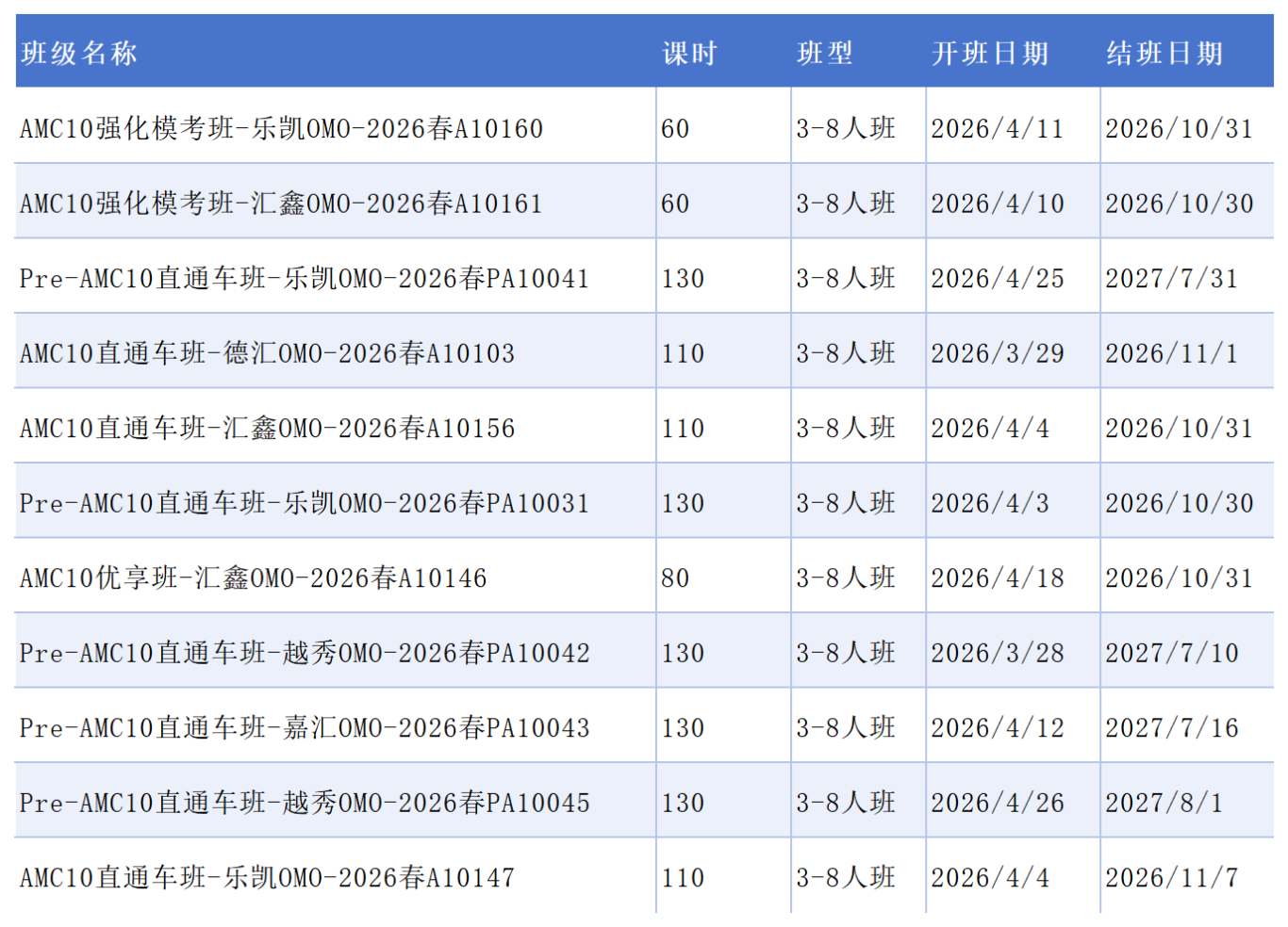 PreAMC10培训课程班型:3-8人小班/一对一
